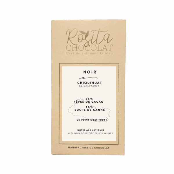 Ingrédients : Fèves de cacao bio 85% , sucre de canne bio 15% (sans ajout de beurre de cacao, ni lécithine)